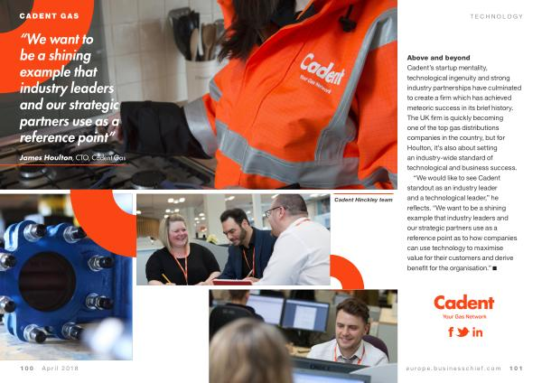“ We would like to see Cadent standout as an industry leader and a technological leader ,” he reflects . “ We want to be a shining example that industry leaders and our strategic partners use as a reference point as to how companies can use technology to maximise value for their customers and derive benefit for the organisation .”