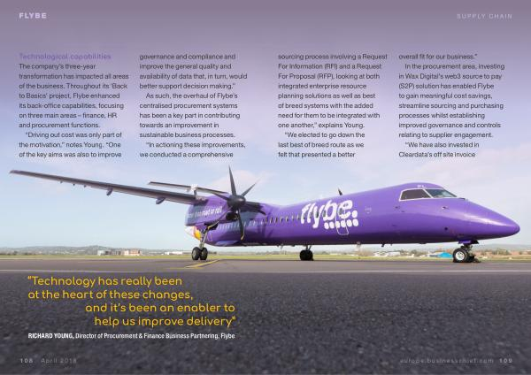 In the procurement area , investing in Wax Digital ’ s web3 source to pay ( S2P ) solution has enabled Flybe to gain meaningful cost savings , streamline sourcing and purchasing processes whilst establishing improved governance and controls relating to supplier engagement .