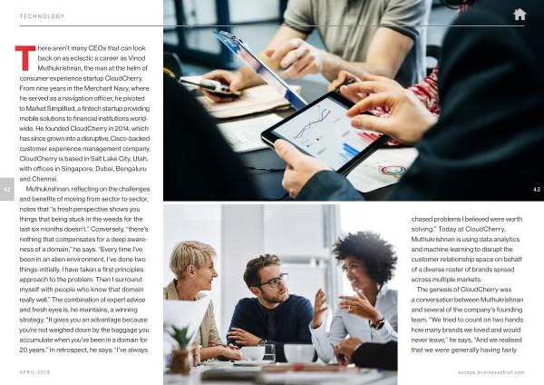 The genesis of CloudCherry was a conversation between Muthukrishnan and several of the company ’ s founding team . “ We tried to count on two hands how many brands we loved and would never leave ,” he says . “ And we realised that we were generally having fairly