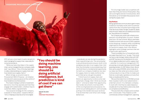 The company also works with infrastructure partners including Nokia , Ericsson , Huawei and Cisco . On top of those , Wilson estimates Vodafone works with around 11,500 suppliers across the group . However , when considering organisations that are helping Vodafone to transform supply chain , then Wilson highlights some strategic partners that are of particular significance .