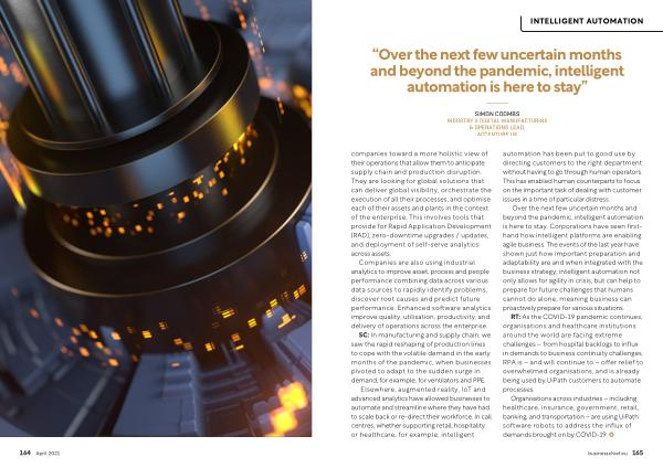 “ Over the next few uncertain months and beyond the pandemic , intelligent automation is here to stay ”