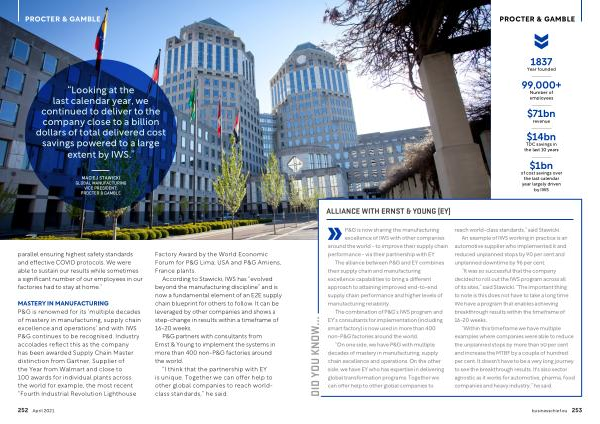 P & G is now sharing the manufacturing excellence of IWS with other companies around the world - to improve their supply chain performance - via their partnership with EY .