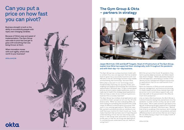 Jasper McIntosh , CIO and Geoff Tinegate , Head of Infrastructure at The Gym Group , explain how Okta has supported them strategically , both throughout the pandemic and with their day — to — day business .