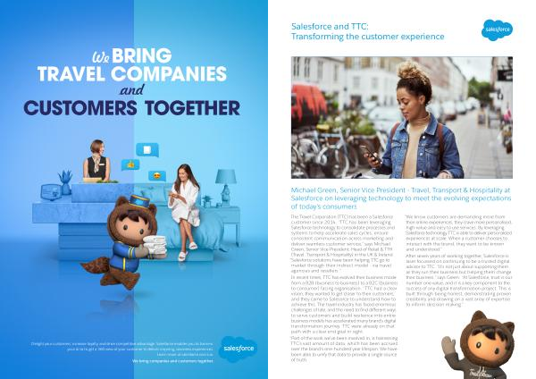 The Travel Corporation ( TTC ) has been a Salesforce customer since 2014 . “ TTC has been leveraging Salesforce technology to consolidate processes and systems to help accelerate sales cycles , ensure consistent communication across marketing and deliver seamless customer service ,” says Michael Green , Senior Vice-President , Head of Retail & TTH ( Travel , Transport & Hospitality ) in the UK & Ireland . “ Salesforce solutions have been helping TTC go to market through their indirect model - via travel agencies and resellers .”