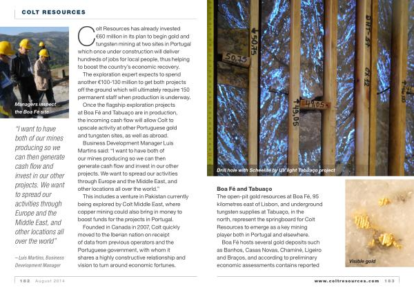 Boa Fé and Tabuaço The open-pit gold resources at Boa Fé , 95 kilometres east of Lisbon , and underground tungsten supplies at Tabuaço , in the north , represent the springboard for Colt Resources to emerge as a key mining player both in Portugal and elsewhere .