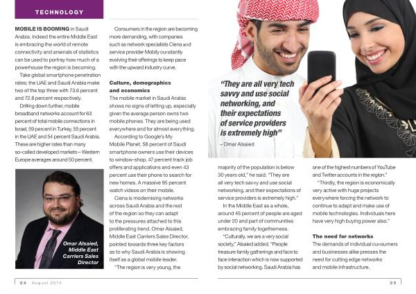 Ciena is modernising networks across Saudi Arabia and the rest of the region so they can adapt to the pressures attached to this proliferating trend . Omar Alsaied , Middle East Carriers Sales Director , pointed towards three key factors as to why Saudi Arabia is showing itself as a global mobile leader .