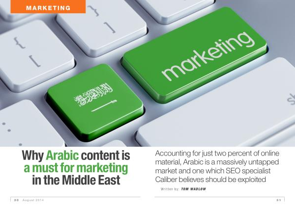 Accounting for just two percent of online material , Arabic is a massively untapped market and one which SEO specialist Caliber believes should be exploited
