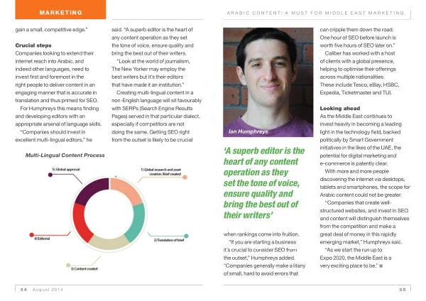 Crucial steps Companies looking to extend their internet reach into Arabic , and indeed other languages , need to invest first and foremost in the right people to deliver content in an engaging manner that is accurate in translation and thus primed for SEO .