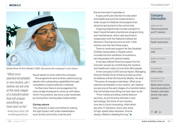 Khalid Omar Al Kaf , Mobily ’ s CEO , discusses the company ’ s core values