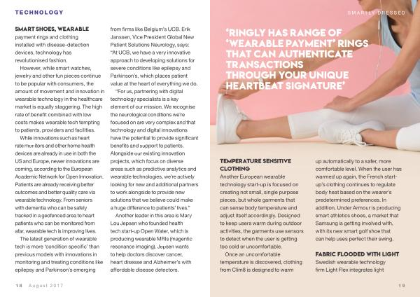 Once an uncomfortable temperature is discovered , clothing from Clim8 is designed to warm up automatically to a safer , more comfortable level . When the user has warmed up again , the French startup ’ s clothing continues to regulate body heat based on the wearer ’ s predetermined preferences . In addition , Under Armour is producing smart athletics shoes , a market that Samsung is getting involved with , with its new smart golf shoe that can help uses perfect their swing .