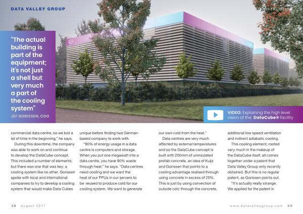 VIDEO : Explaining the high level vision of the DataCube ® facility our own cold from the heat .” Data centres are very much affected by external temperatures and so the DataCube concept is built with 200mm of uninsulated prefab concrete , an idea of Kuijs and Gorissen that points to a cooling advantage realised through using concrete in excess of 25 %. This is just by using convection of outside cold through the concrete , additional low speed ventilation and indirect adiabatic cooling .