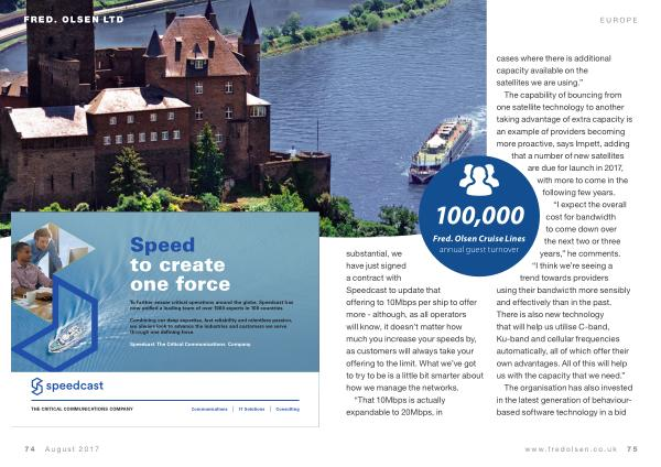 substantial , we have just signed a contract with Speedcast to update that offering to 10Mbps per ship to offer more - although , as all operators will know , it doesn ’ t matter how much you increase your speeds by , as customers will always take your offering to the limit . What we ’ ve got to try to be is a little bit smarter about how we manage the networks . “ That 10Mbps is actually expandable to 20Mbps , in