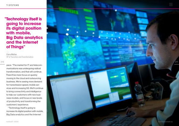 210 pace . “ The market for IT and telecommunications was undergoing radical transformation , and that will continue . There ’ ll be more focus on quickly moving to the cloud and outsourcing business . We ’ re seeing more demand for transmission speed , mobile services and increasing 5G . We ’ ll continue to bring connectivity and intelligence to help our customers with new business models , and focus on new levels of productivity and transforming the customers ’ experience .