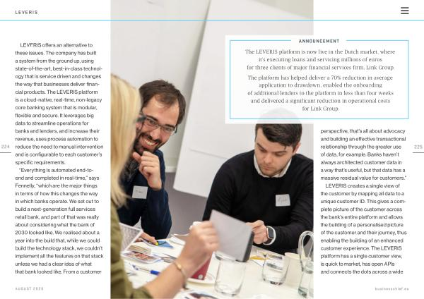 The LEVERIS platform is now live in the Dutch market , where it ’ s executing loans and servicing millions of euros for three clients of major financial services firm , Link Group .