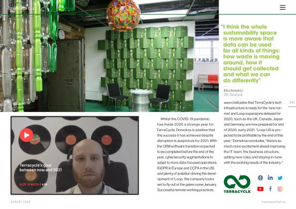 Whilst the COVID-19 pandemic has made 2020 a strange year for TerraCycle , Domokos is positive that the success it has achieved despite disruption is auspicious for 2021 . With the CRM software transition expected to be completed before the end of the year , cybersecurity augmentations to adapt to more data-focused operations ( GDPR in Europe and CCPA in the US ) and plenty of ambition driving the development of Loop , the company looks set to fly out of the gates come January . Successful remote working practices