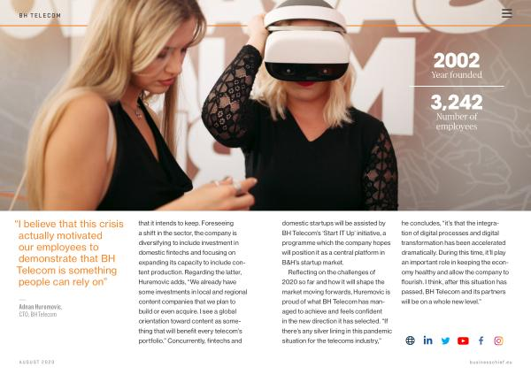 — Adnan Huremovic , CTO , BH Telecom that it intends to keep . Foreseeing a shift in the sector , the company is diversifying to include investment in domestic fintechs and focusing on expanding its capacity to include content production . Regarding the latter , Huremovic adds , “ We already have some investments in local and regional content companies that we plan to build or even acquire . I see a global orientation toward content as something that will benefit every telecom ’ s portfolio .” Concurrently , fintechs and