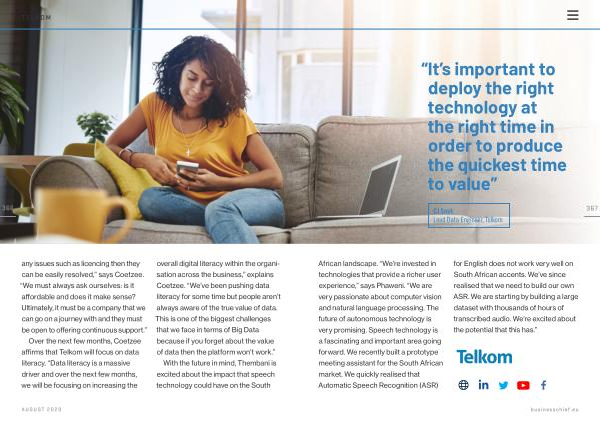 Over the next few months , Coetzee affirms that Telkom will focus on data literacy . “ Data literacy is a massive driver and over the next few months , we will be focusing on increasing the overall digital literacy within the organisation across the business ,” explains Coetzee . “ We ’ ve been pushing data literacy for some time but people aren ’ t always aware of the true value of data . This is one of the biggest challenges that we face in terms of Big Data because if you forget about the value of data then the platform won ’ t work .”