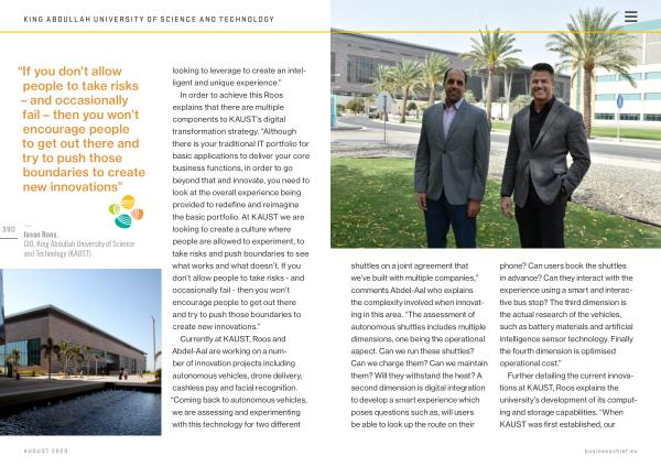 391 shuttles on a joint agreement that we ’ ve built with multiple companies ,” comments Abdel-Aal who explains the complexity involved when innovating in this area . “ The assessment of autonomous shuttles includes multiple dimensions , one being the operational aspect . Can we run these shuttles ? Can we charge them ? Can we maintain them ? Will they withstand the heat ? A second dimension is digital integration to develop a smart experience which poses questions such as , will users be able to look up the route on their phone ? Can users book the shuttles in advance ? Can they interact with the experience using a smart and interactive bus stop ? The third dimension is the actual research of the vehicles , such as battery materials and artificial intelligence sensor technology . Finally the fourth dimension is optimised operational cost .”