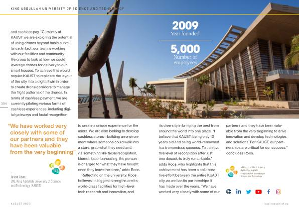 — Jason Roos , CIO , King Abdullah University of Science and Technology ( KAUST ) to create a unique experience for the users . We are also looking to develop cashless stores — building an environment where someone could walk into a store , grab what they need and , via something like facial recognition , biometrics or barcoding , the person is charged for what they have bought once they leave the store ,” adds Roos .