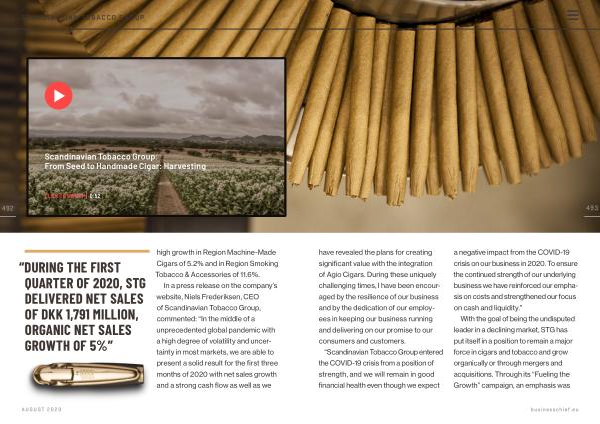 “ DURING THE FIRST QUARTER OF 2020 , STG DELIVERED NET SALES OF DKK 1,791 MILLION , ORGANIC NET SALES GROWTH OF 5 %” high growth in Region Machine-Made Cigars of 5.2 % and in Region Smoking Tobacco & Accessories of 11.6 %.
