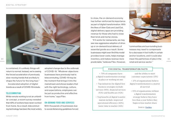 • Top industries for digital-first business strategies include : services ( 95 %), financial services ( 93 %) and healthcare ( 92 %)