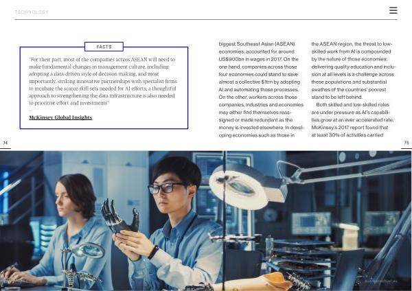“ For their part , most of the companies across ASEAN will need to make fundamental changes in management culture , including adopting a data-driven style of decision making , and most importantly , striking innovative partnerships with specialist firms to incubate the scarce skill sets needed for AI efforts ; a thoughtful approach to strengthening the data infrastructure is also needed to prioritise effort and investments ” — McKinsey Global Insights