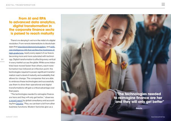 From AI and RPA to advanced data analytics , digital transformation in the corporate finance secto is poised to reach maturity