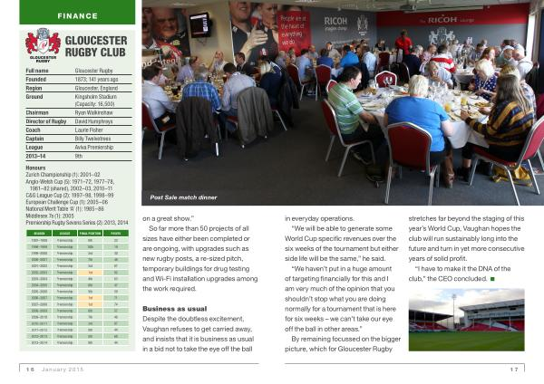 By remaining focussed on the bigger picture , which for Gloucester Rugby stretches far beyond the staging of this year ’ s World Cup , Vaughan hopes the club will run sustainably long into the future and turn in yet more consecutive years of solid profit .