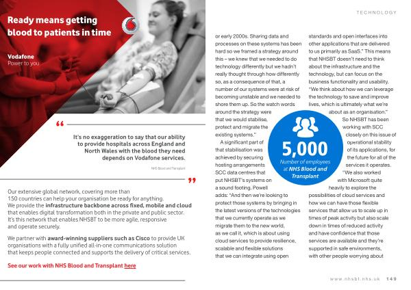 standards and open interfaces into other applications that are delivered to us primarily as SaaS .” This means that NHSBT doesn ’ t need to think about the infrastructure and the technology , but can focus on the business functionality and usability . “ We think about how we can leverage the technology to save and improve lives , which is ultimately what we ’ re about as an organisation .” So NHSBT has been working with SCC closely on this issue of operational stability of its applications , for the future for all of the services it operates . “ We also worked with Microsoft quite heavily to explore the possibilities of cloud services and how we can have those flexible services that allow us to scale up in times of peak activity but also scale down in times of reduced activity and have confidence that those services are available and they ’ re supported in safe environments , with other people worrying about