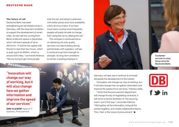 Customer service is a key focus area for Deutsche Bahn Germany will also see it continue to innovate alongside the development of the market .