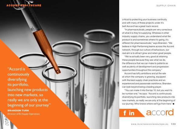 “ You can make it into the top 10 , but you want to be number one ,” he says . “ Accord is continuously diversifying its portfolio , launching new products into new markets , so really we are only at the beginning of our journey . Who knows where we ’ ll go from here .” www . businessrevieweurope . eu 139