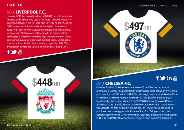 Chelsea Football Club has a current value of $ 1.845bn , and an annual revenue of $ 497mn . The organisation ’ s net valuation has grown by 11 % in the past year , from a 2016 value of $ 1.661bn , although revenue has fallen by $ 8mn in that time . Chelsea ’ s revenue peaked in 2015 at $ 526mn but has grown significantly , on average , since the club ’ s 2003 takeover by owner Roman Abramovich . As of 2015 , Russian billionaire Abramovich has made interestfree loans to the organisation in excess of $ 1bn . These have been used to purchase new training grounds , improve Stamford Bridge stadium , and furnish Abramovich ’ s $ 1.3mn private box . Stamford Bridge ’ s current capacity is 41,663 , and 2018 / 19 season tickets range in price from $ 785 to $ 1,650 .