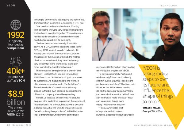 The annual revenue for VEON ( 2016 ) thinking to delivery and strategizing the next move . Transformation leadership is central to a CTO role .