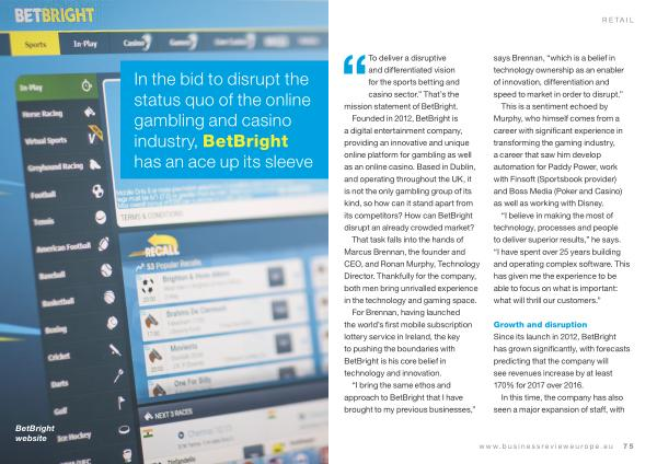 Founded in 2012 , BetBright is a digital entertainment company , providing an innovative and unique online platform for gambling as well as an online casino . Based in Dublin , and operating throughout the UK , it is not the only gambling group of its kind , so how can it stand apart from its competitors ? How can BetBright disrupt an already crowded market ?