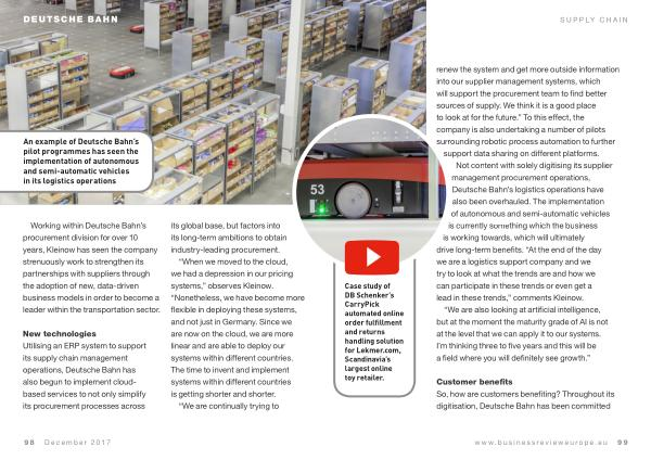 An example of Deutsche Bahn ’ s pilot programmes has seen the implementation of autonomous and semi-automatic vehicles in its logistics operations