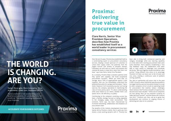 Clare Harris , Senior Vice President Operations , describes how Proxima has established itself as a world leader in procurement consultancy services