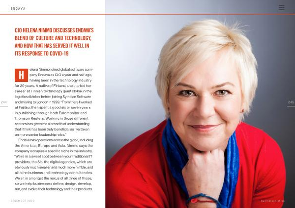 CIO HELENA NIMMO DISCUSSES ENDAVA ’ S BLEND OF CULTURE AND TECHNOLOGY , AND HOW THAT HAS SERVED IT WELL IN ITS RESPONSE TO COVID-19