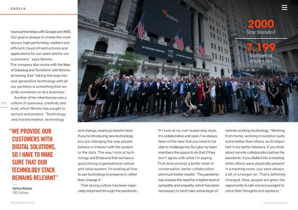 — Helena Nimmo , CIO , Endava and change , clearly go hand in hand . If you ’ re introducing new technology , you are changing the way people behave or interact with the system or the data . The way I look at technology and Endava is that we have a good , strong organisational culture and value system . I ’ m looking at how to use technology to preserve it , rather than change it .”