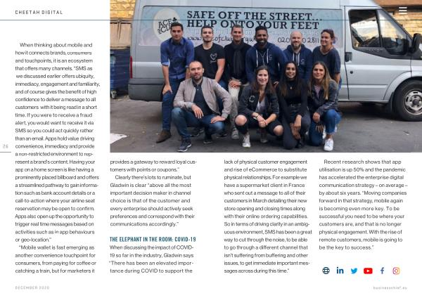 Recent research shows that app utilisation is up 50 % and the pandemic has accelerated the enterprise digital communication strategy – on average – by about six years . “ Moving companies forward in that strategy , mobile again is becoming even more key . To be successful you need to be where your customers are , and that is no longer physical engagement . With the rise of remote customers , mobile is going to be the key to success .”