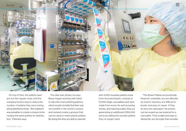 313 with 4,000 reusable pallets made from recycled plastic , instead of 75,000 single-use pallets each year made from wood . As well as saving money , and reducing waste , they are generating an additional € 250,000 euros by selling the wooden pallets they no longer need .