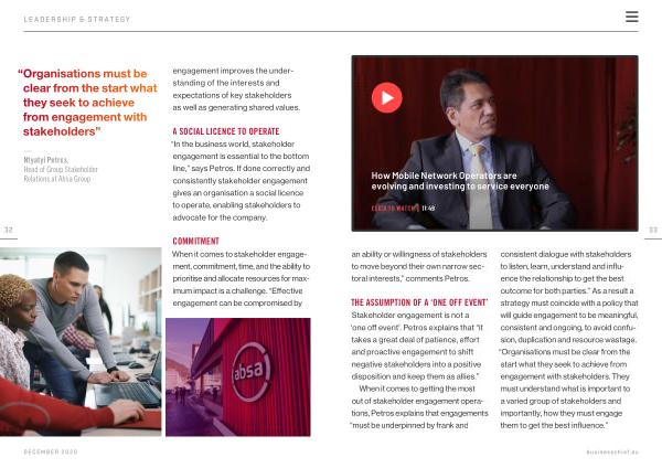 When it comes to getting the most out of stakeholder engagement operations , Petros explains that engagements “ must be underpinned by frank and consistent dialogue with stakeholders to listen , learn , understand and influence the relationship to get the best outcome for both parties .” As a result a strategy must coincide with a policy that will guide engagement to be meaningful , consistent and ongoing , to avoid confusion , duplication and resource wastage . “ Organisations must be clear from the start what they seek to achieve from engagement with stakeholders . They must understand what is important to a varied group of stakeholders and importantly , how they must engage them to get the best influence .”