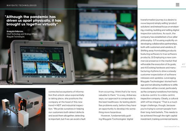 However , fundamentally guiding Waygate Technologies ’ digital transformation journey is a desire to move beyond simply selling ‘ product solutions ’ and instead focus on envisioning , creating , building and selling digital inspection solutions . As such , the company has established a four pillar philosophy : 1 ) Focusing explicitly on developing collaborative partnerships , both with customers and vendors ; 2 ) Shifting away from building products featuring software to true software products ; 3 ) Employing a new commercial presence in the market that will enable the execution of its goals ; and 4 ) Evolving hardware and manufacturing rhythms to drive a steady customer expectation of software releases and updates . Leveraging Waygate Technologies ’ storied heritage and not allowing traditions to stifle innovation will be crucial , particularly as the company transitions from being a device-centric to a data-centric inspection company . Clearly , a cultural shift will be integral ; “ That is a much larger challenge , though , because you ’ re trying to convert people from their long-held beliefs . This needs to be achieved through the right capital investment , training commercial teams