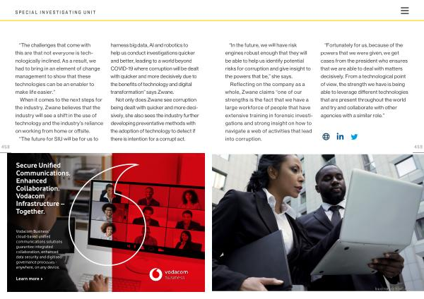 “ Fortunately for us , because of the powers that we were given , we get cases from the president who ensures that we are able to deal with matters decisively . From a technological point of view , the strength we have is being able to leverage different technologies that are present throughout the world and try and collaborate with other agencies with a similar role .” 459 businesschief . eu