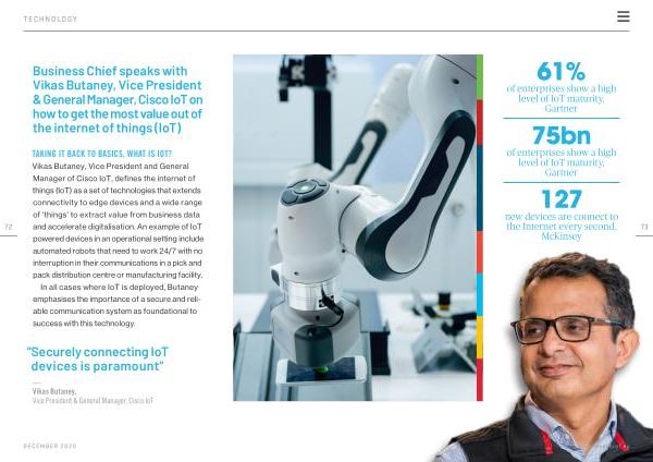 Business Chief speaks with Vikas Butaney , Vice President & General Manager , Cisco IoT on how to get the most value out of the internet of things ( IoT )