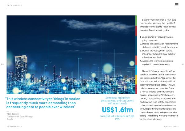 Butaney recommends a four-step process for picking the right IoT wireless technology to reduce costs , complexity and security risks :