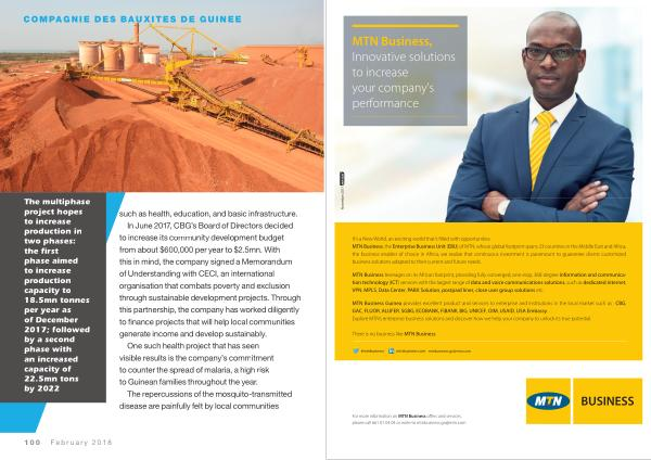 In June 2017 , CBG ’ s Board of Directors decided to increase its community development budget from about $ 600,000 per year to $ 2.5mn . With this in mind , the company signed a Memorandum of Understanding with CECI , an international organisation that combats poverty and exclusion through sustainable development projects . Through this partnership , the company has worked diligently to finance projects that will help local communities generate income and develop sustainably . One such health project that has seen visible results is the company ’ s commitment to counter the spread of malaria , a high risk to Guinean families throughout the year .