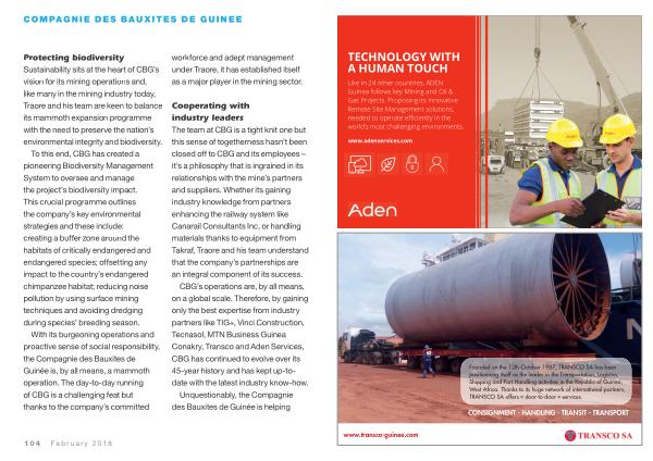 Like in 24 other countries , ADEN Guinea follows key Mining and Oil & Gas Projects . Proposing its Innovative Remote Site Management solutions , needed to operate efficiently in the world ’ s most challenging environments .