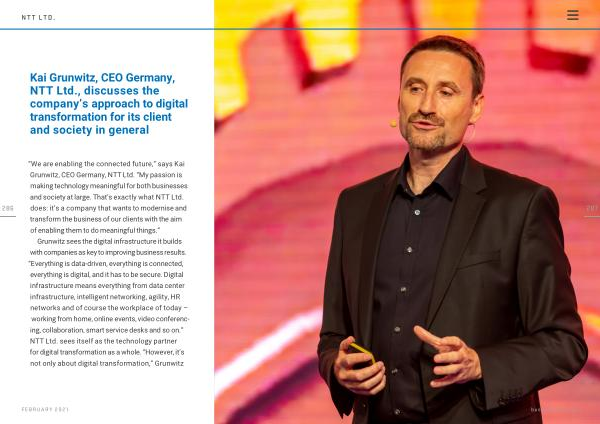Kai Grunwitz , CEO Germany , NTT Ltd ., discusses the company ’ s approach to digital transformation for its client and society in general