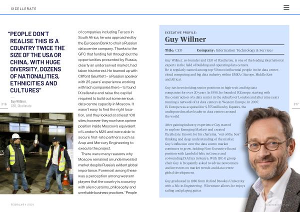 Guy Willner , co-founder and CEO of IXcellerate , is one of the leading international experts in the field of building and operating data centers . He is regularly named among top-50 most influential people in the data center , cloud computing and big data industry within EMEA ( Europe , Middle East and Africa ).