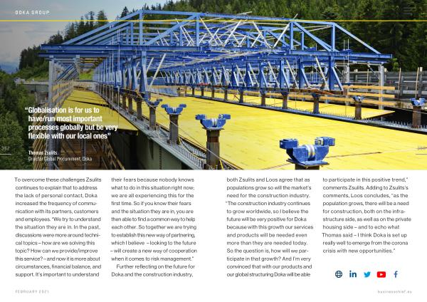 To overcome these challenges Zsulits continues to explain that to address the lack of personal contact , Doka increased the frequency of communication with its partners , customers and employees . “ We try to understand the situation they are in . In the past , discussions were more around technical topics – how are we solving this topic ? How can we provide / improve this service ? – and now it is more about circumstances , financial balance , and support . It ’ s important to understand their fears because nobody knows what to do in this situation right now ; we are all experiencing this for the first time . So if you know their fears and the situation they are in , you are then able to find a common way to help each other . So together we are trying to establish this new way of partnering , which I believe – looking to the future – will create a new way of cooperation when it comes to risk management .”